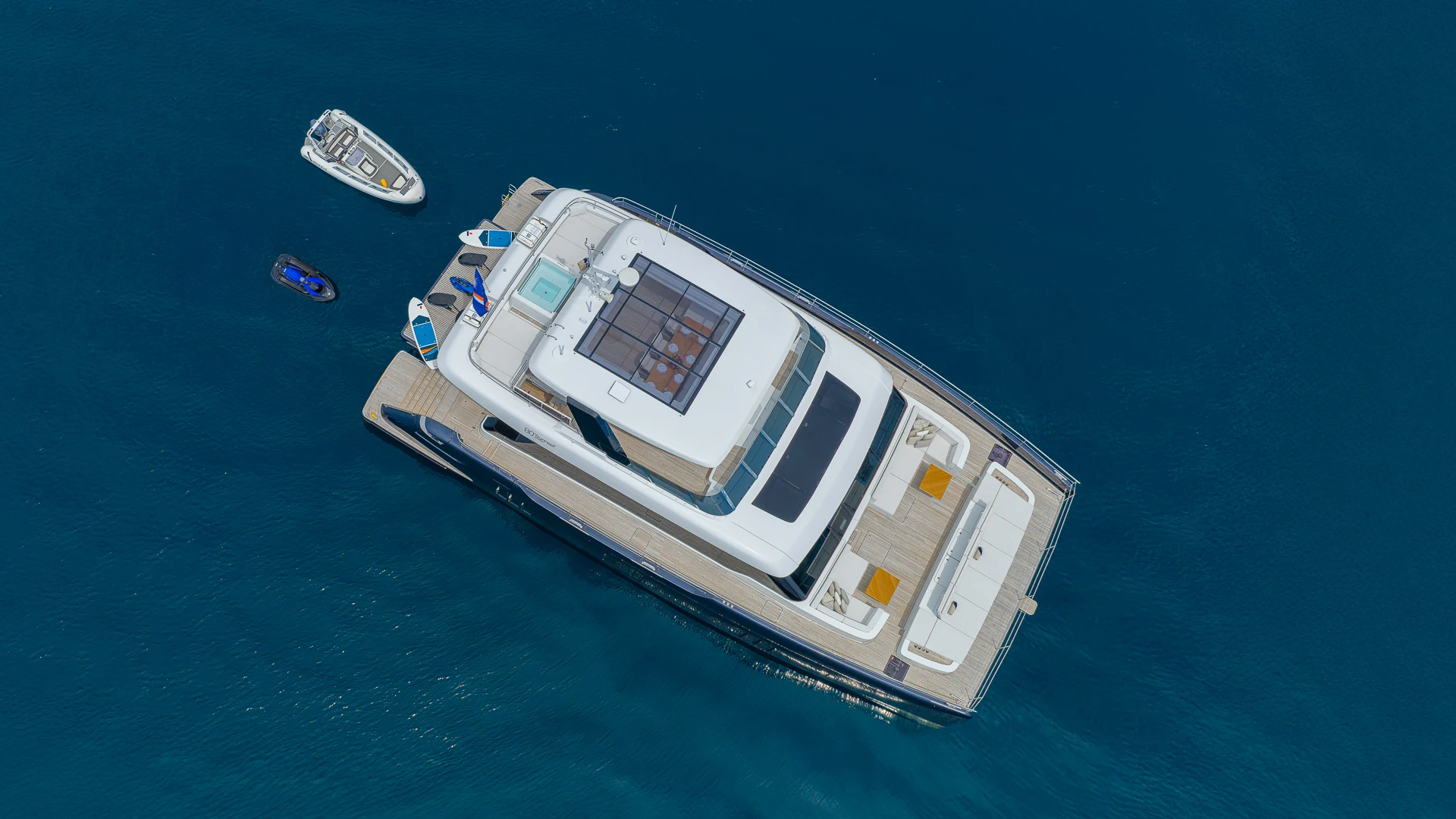 COLIBRI is equally impressive in terms of onboard activities, with a full range of water toys including a 5.2m Highfield tender with 100hp Yamaha, Sea-Doo jet ski, Seabob, two Fliteboard PRO e-foils, kayaks, paddleboards, wakeboard, and a selection of towables, as well as snorkelling and diving equipment.