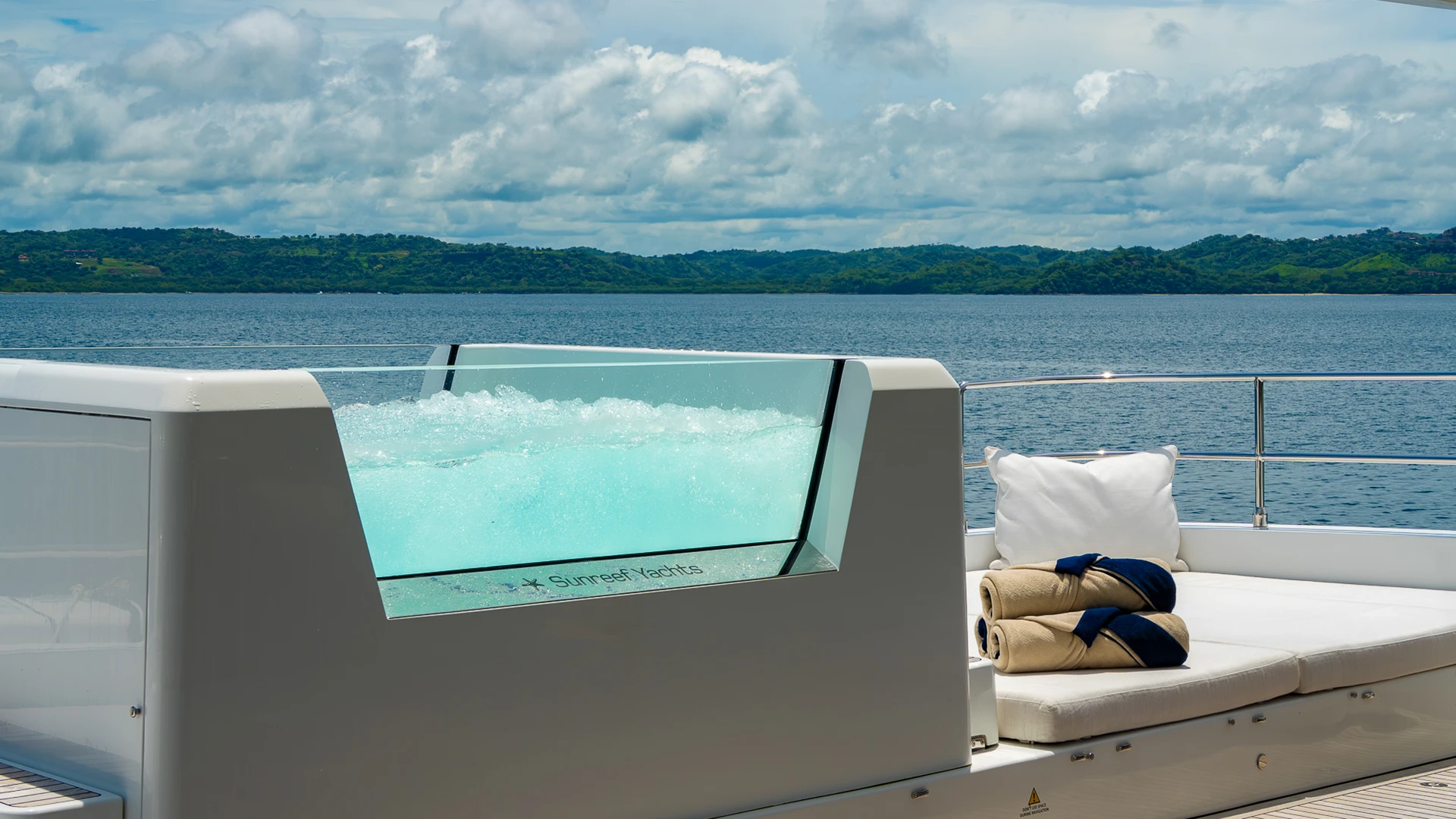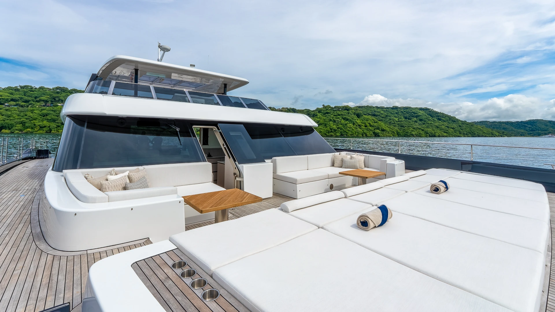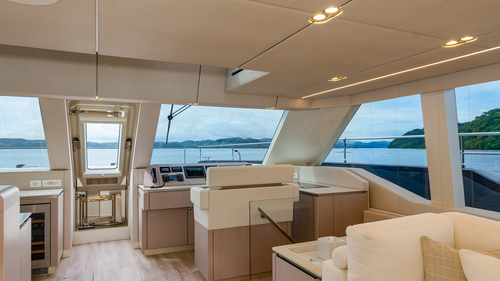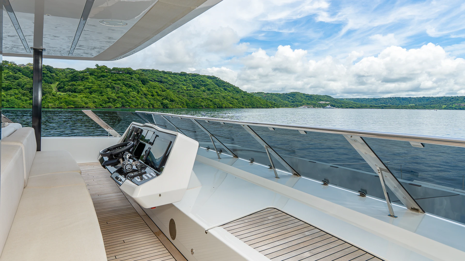 Her wide catamaran beam provides outstanding stability and generous volumes, with multiple indoor and outdoor living areas designed for life at sea. The flybridge features a jacuzzi and spacious lounging areas, offering panoramic views over Costa Rica’s dramatic coastline.