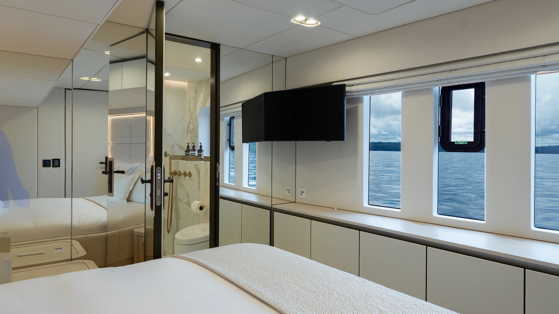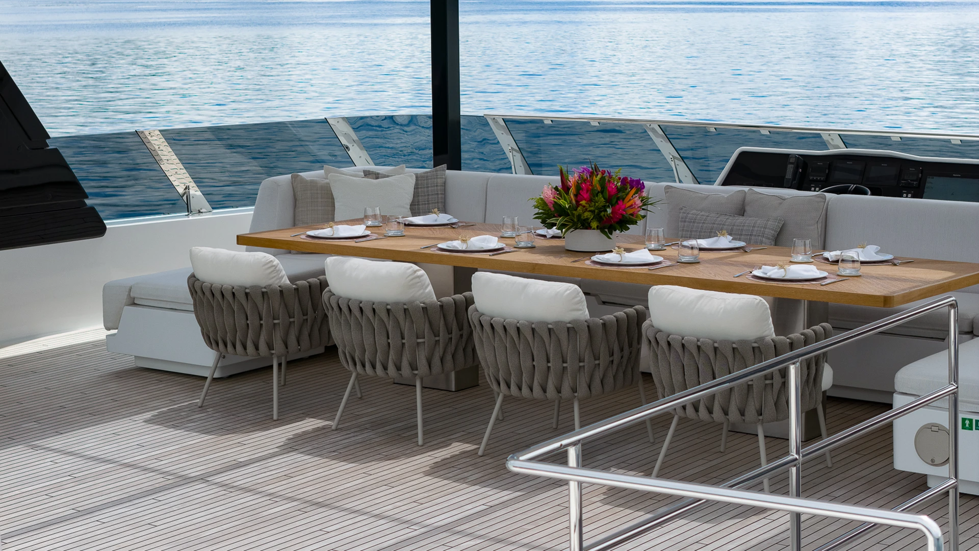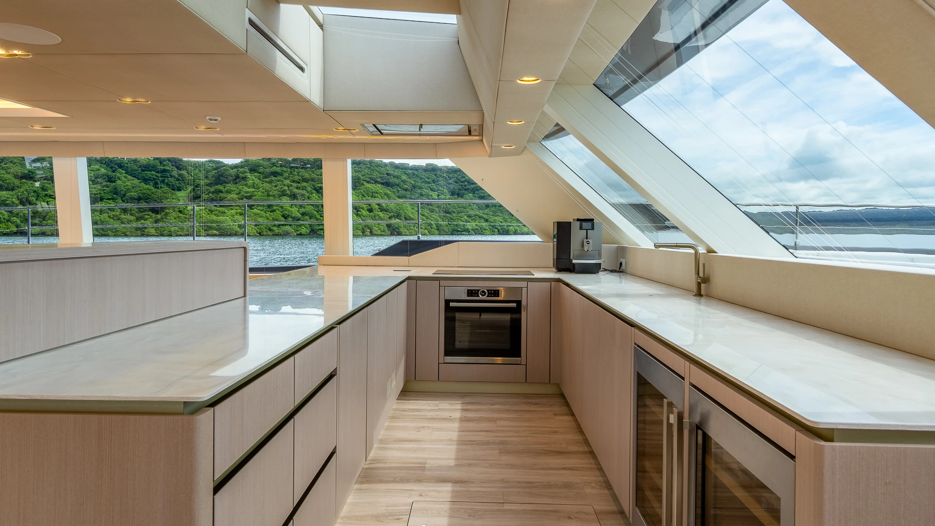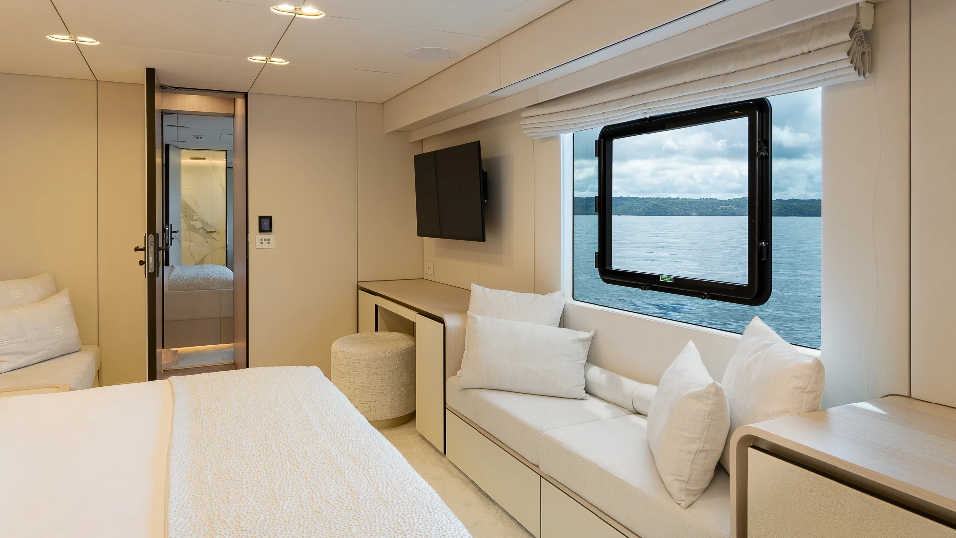 Her wide catamaran beam provides outstanding stability and generous volumes, with multiple indoor and outdoor living areas designed for life at sea. The flybridge features a jacuzzi and spacious lounging areas, offering panoramic views over Costa Rica’s dramatic coastline.